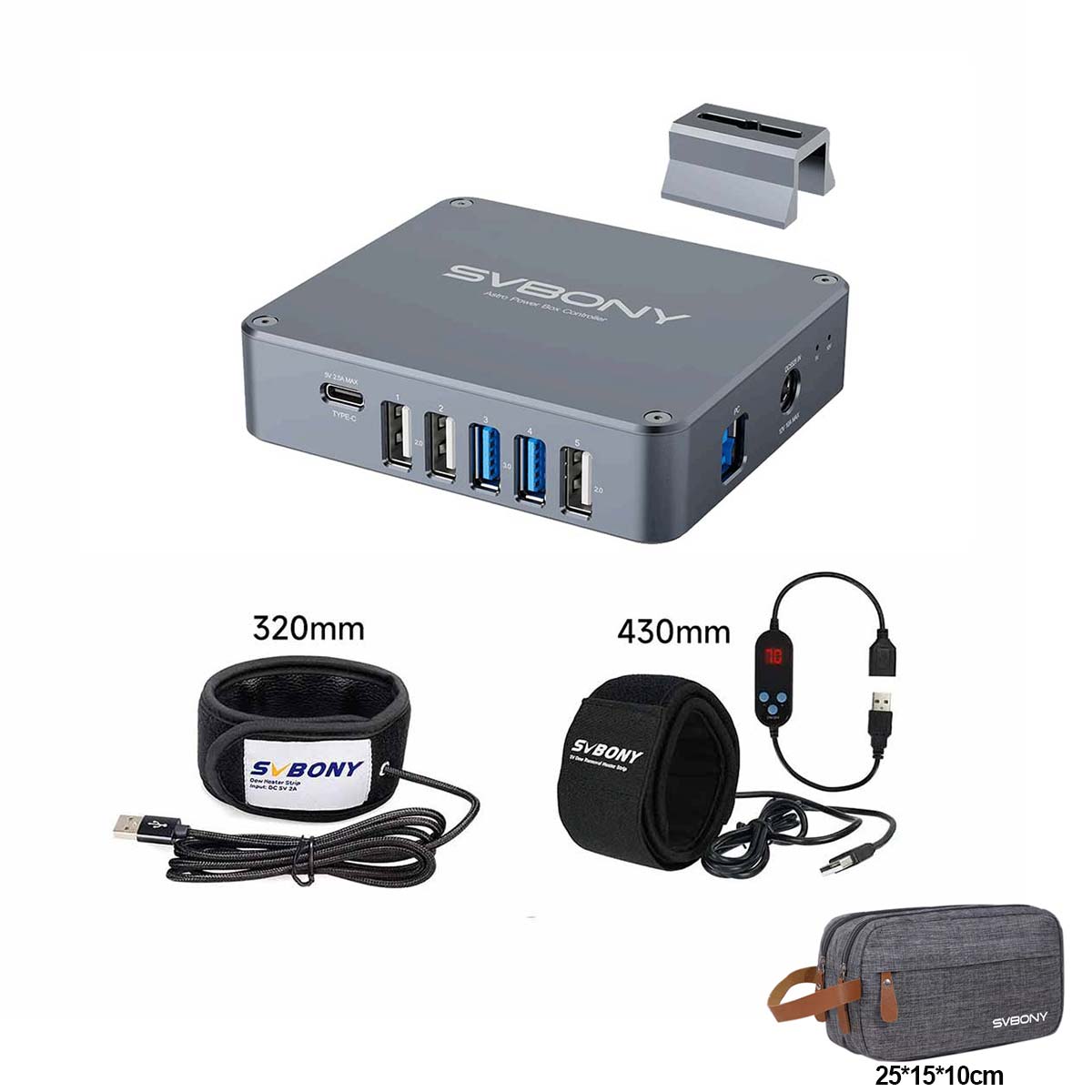 SVBONY Astro Power & Dew Protection Kit – SV241 Pro Remote Astro Power Controller + SV172 320mm & 430mm Dew Heaters